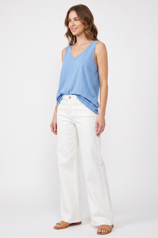 Eva Atlas Raw-Hem Linen V-Neck Tank Top