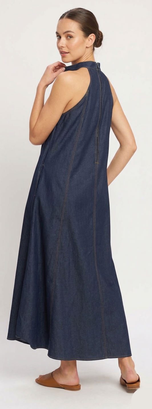 The Heritage Indigo Denim Halter Maxi