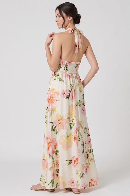 The Flora Smocked Halter Maxi with Side Slit