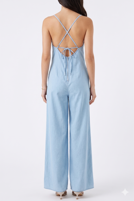 The Skyward Wide-Leg Open-Back Denim Jumpsuit
