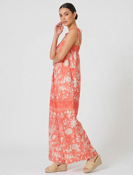Hibiscus Coral Tie-Shoulder Jumpsuit