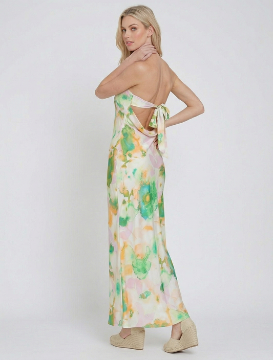 The Monet Watercolor Satin Tie-Back Maxi