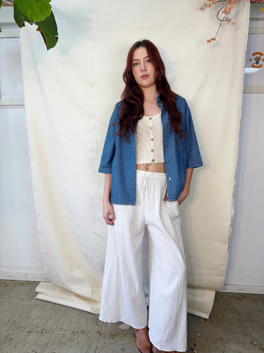 Sold outOversized denim button up top