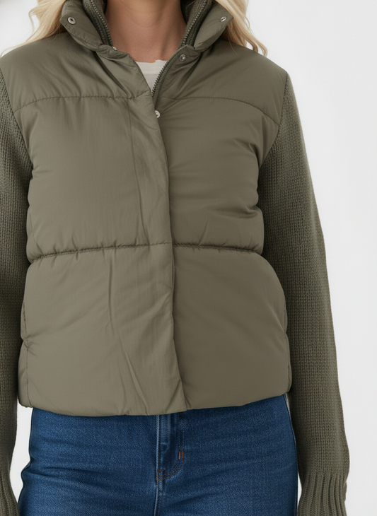 Olive puffer sweater sleeve jacket
