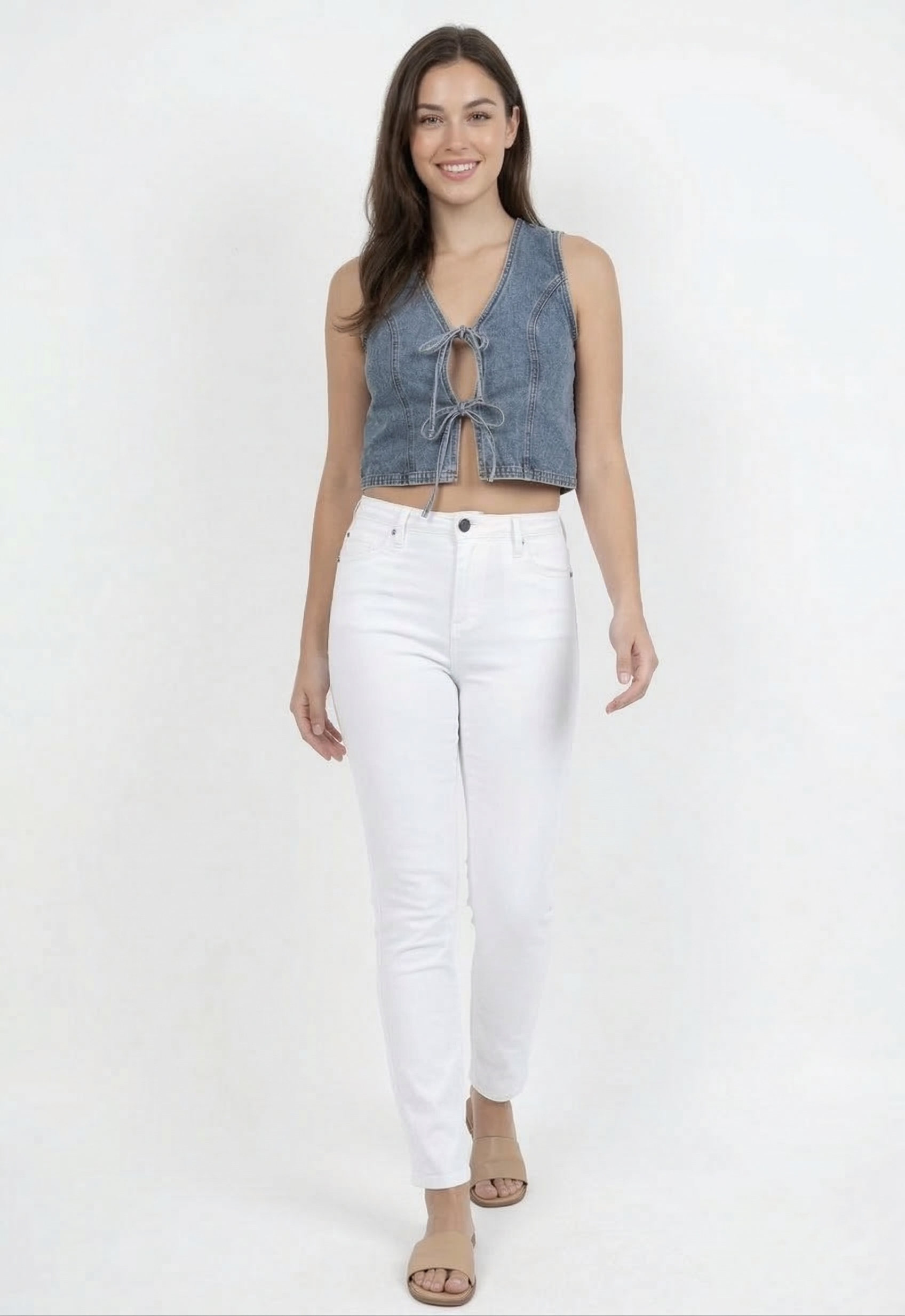 DenimTie front Denim Vest